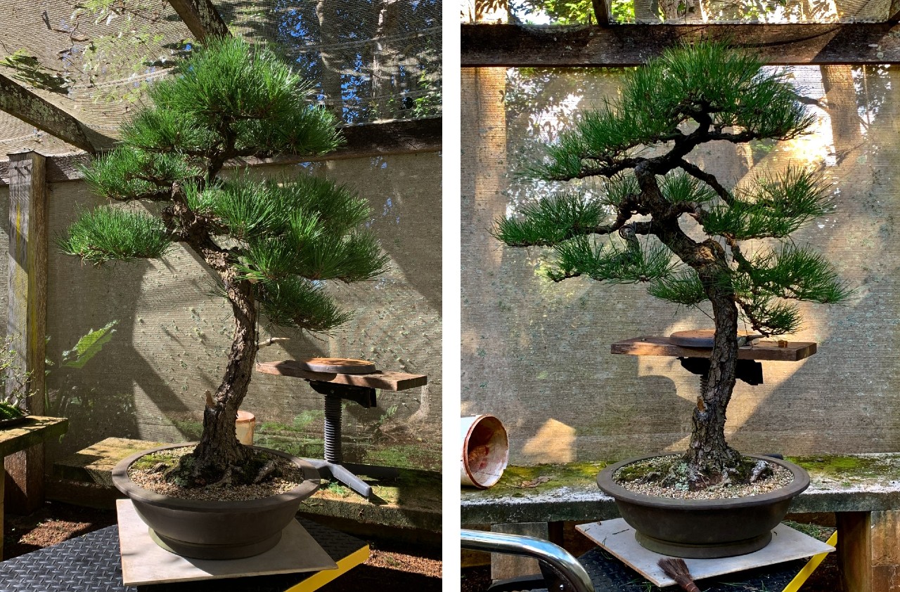 We aquired this bonsai from the collection of Ian Hearn 2 years ago. This 'Mikawa' variaty of the Japanese Black Pine had been propagated (from Japanese seed), developed and refined by Ian since the early 1970's.